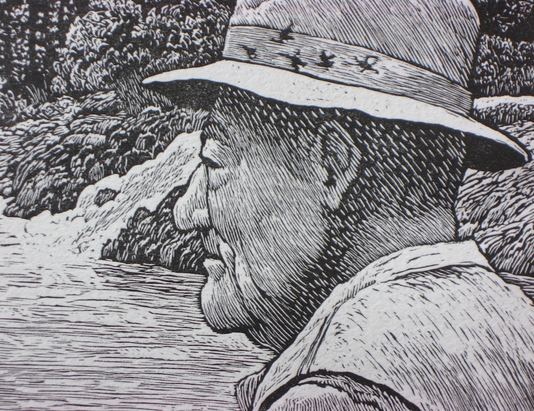 The current project is an exert from John Voelker’s (pen name Robert Traver) Trout Madness, the chapter titled “The Intruder”. The book includes ten wood engravings by Jim Westergard and a foreword by Richard F. Vander Veen.