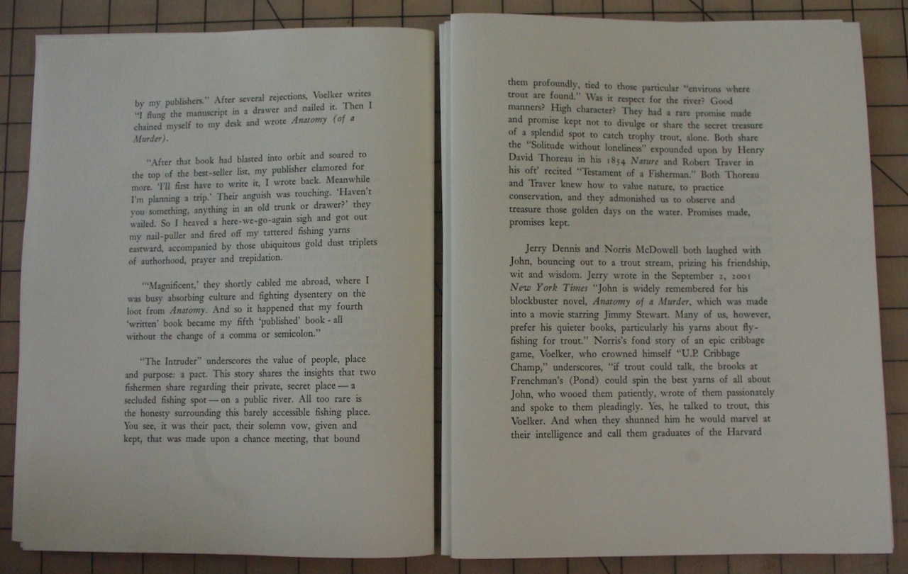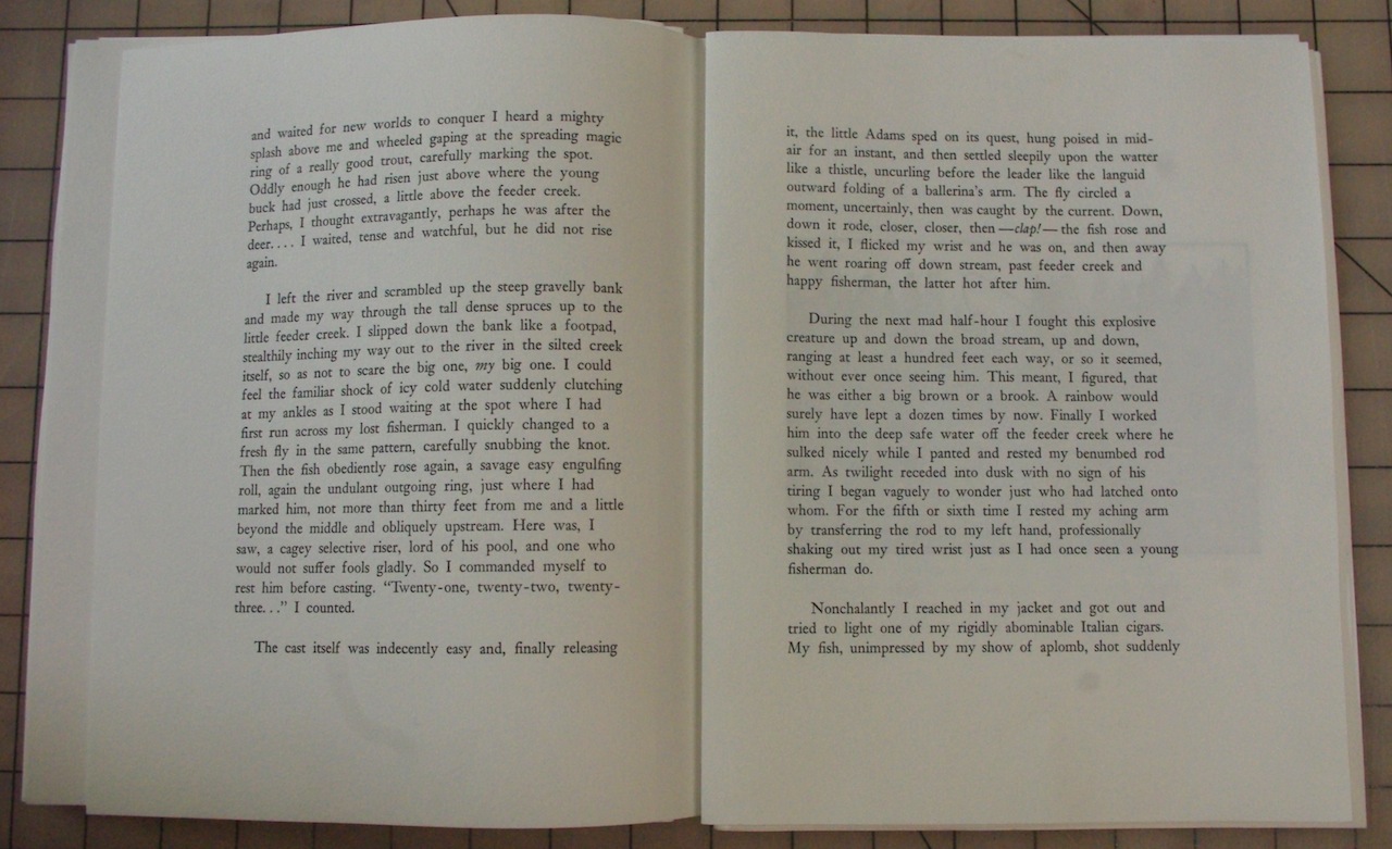 Other things have been coming along as well – the new Heidelberg press is completely cleaned up and running now with new rollers and a host of adjustments necessary for quality printing. The new Linotype/intaglio studio space now has proper lighting, a ceiling fan and has become far more organized than I had ever hoped from its prior home in the Lino cave. Overall, things are great here at DWP, just not enough time left at the end of the day to go fishing – the brown drakes are on right now – mmmmmm.