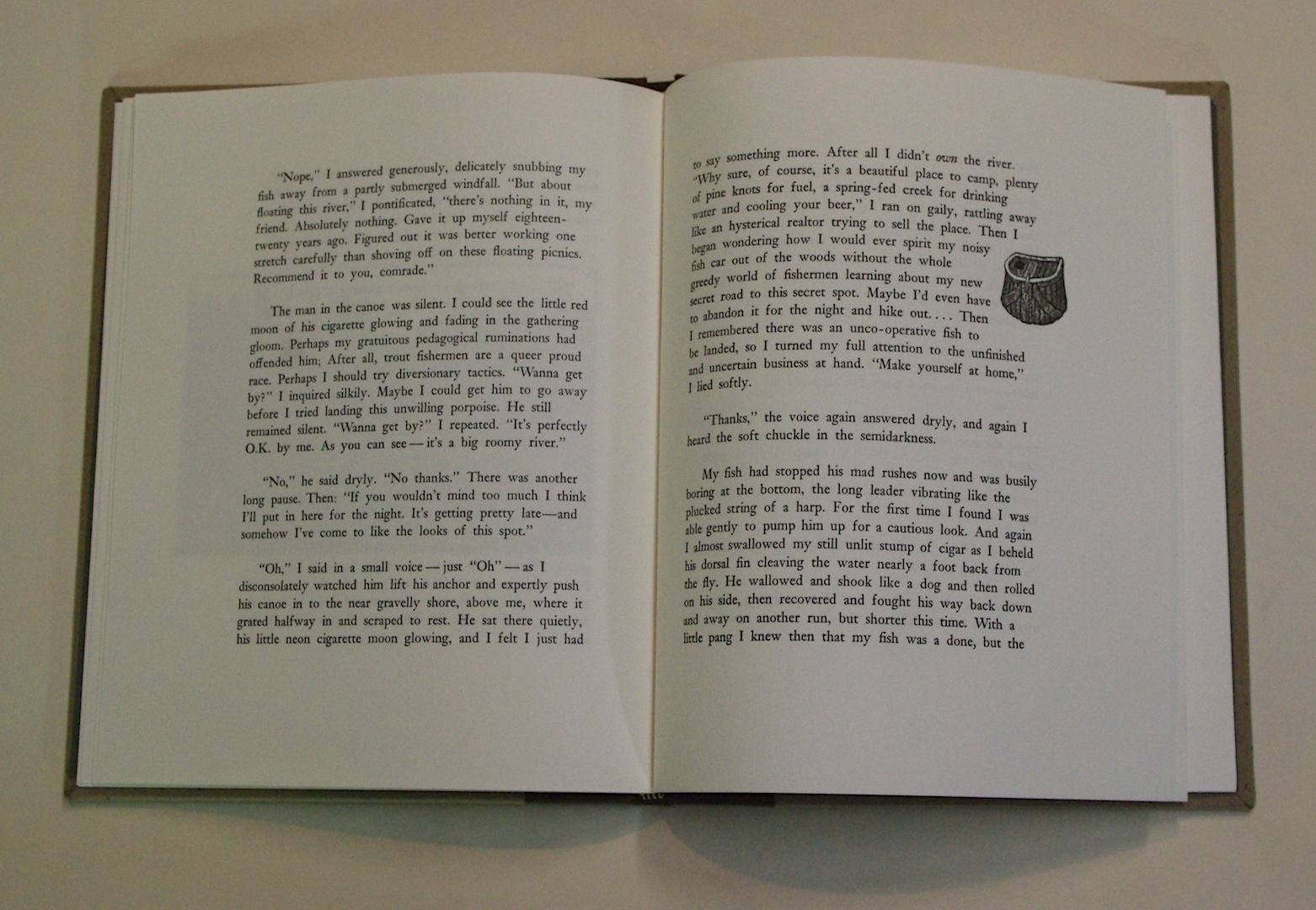 “The Intruder” regular edition bindings complete 17 Sunday Jun 2012 Original size at 1562 × 1080 ≈ Leave a comment Creel page spread Page spread, wood engraving by Jim Westergard