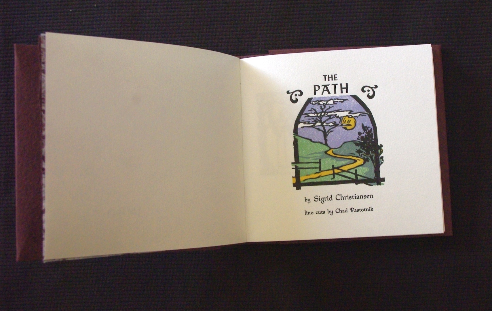 “The Path” now completed 09 Thursday May 2013 Original size at 1709 × 1080 ≈ Leave a comment Title Page 4 color linoleum cut and Lydian display type.