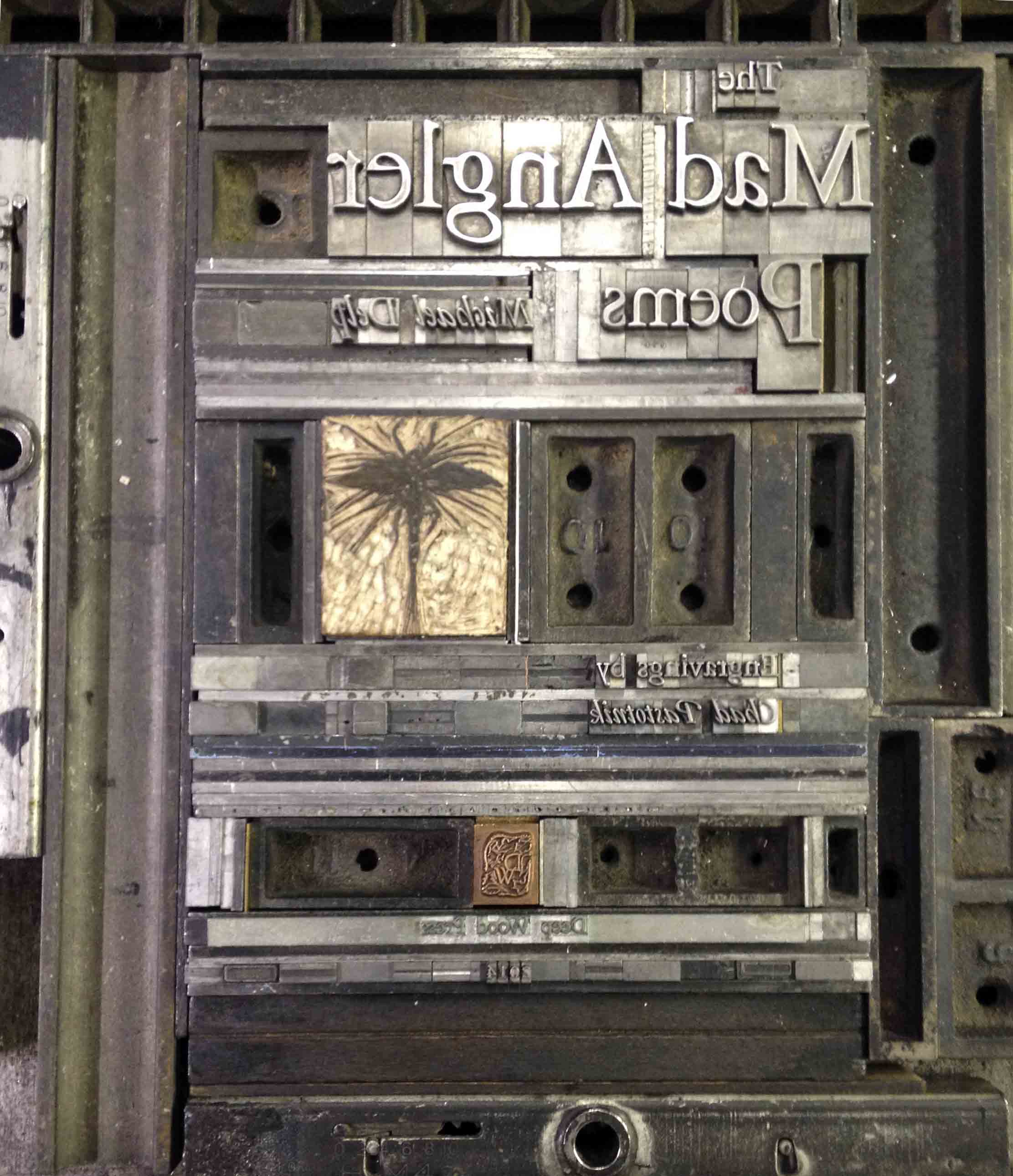 The Mad Angler Poems – trout, ink and paper 28 Saturday Jun 2014 Original size at 2223 × 2580 ≈ Leave a comment The title page form locked up on the Vandercook ready for inking.
