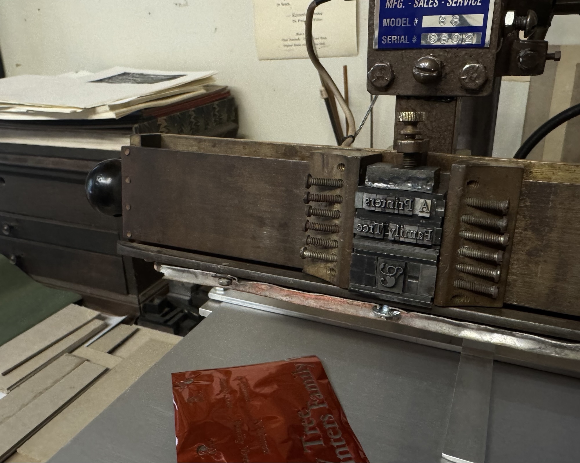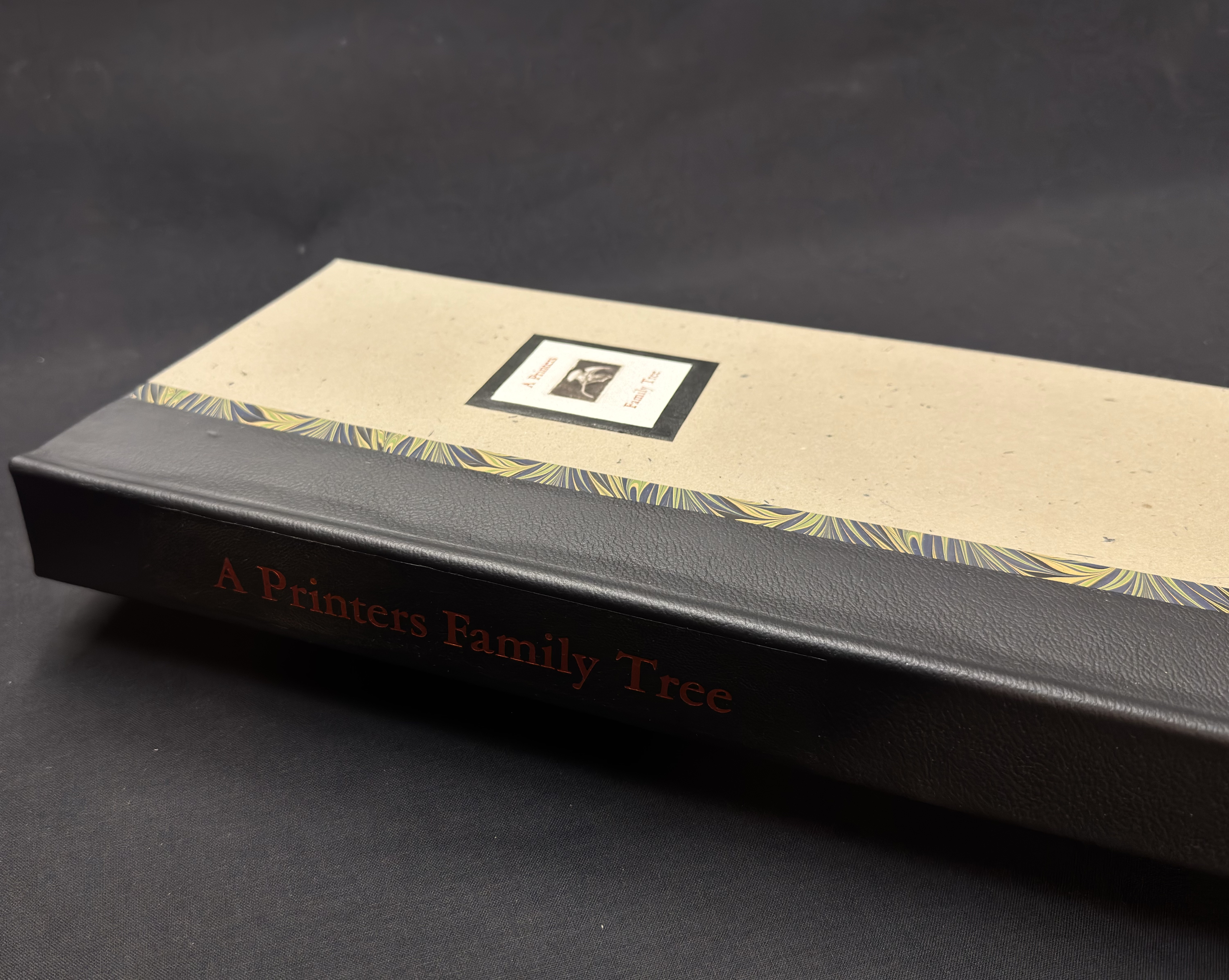 Those of you who know me know my views on the contemporary “fine press” book scene. Conceptual ideas in small editions run rampant but often at the expense of craft and frequent ephemeral topics. I was making things like this 35 years ago when it was inconceivable to solicit such things to institutions while at the same time trying to achieve what I considered the pinnacle of fine press – books with words, lots of them and in proper bindings. A Printers Family Tree is my offering to the book arts gods incorporating traditional intaglio, letterpress, type casting and book binding as a tribute to the great individuals who came before who have influenced, informed and made possible my means of existence.