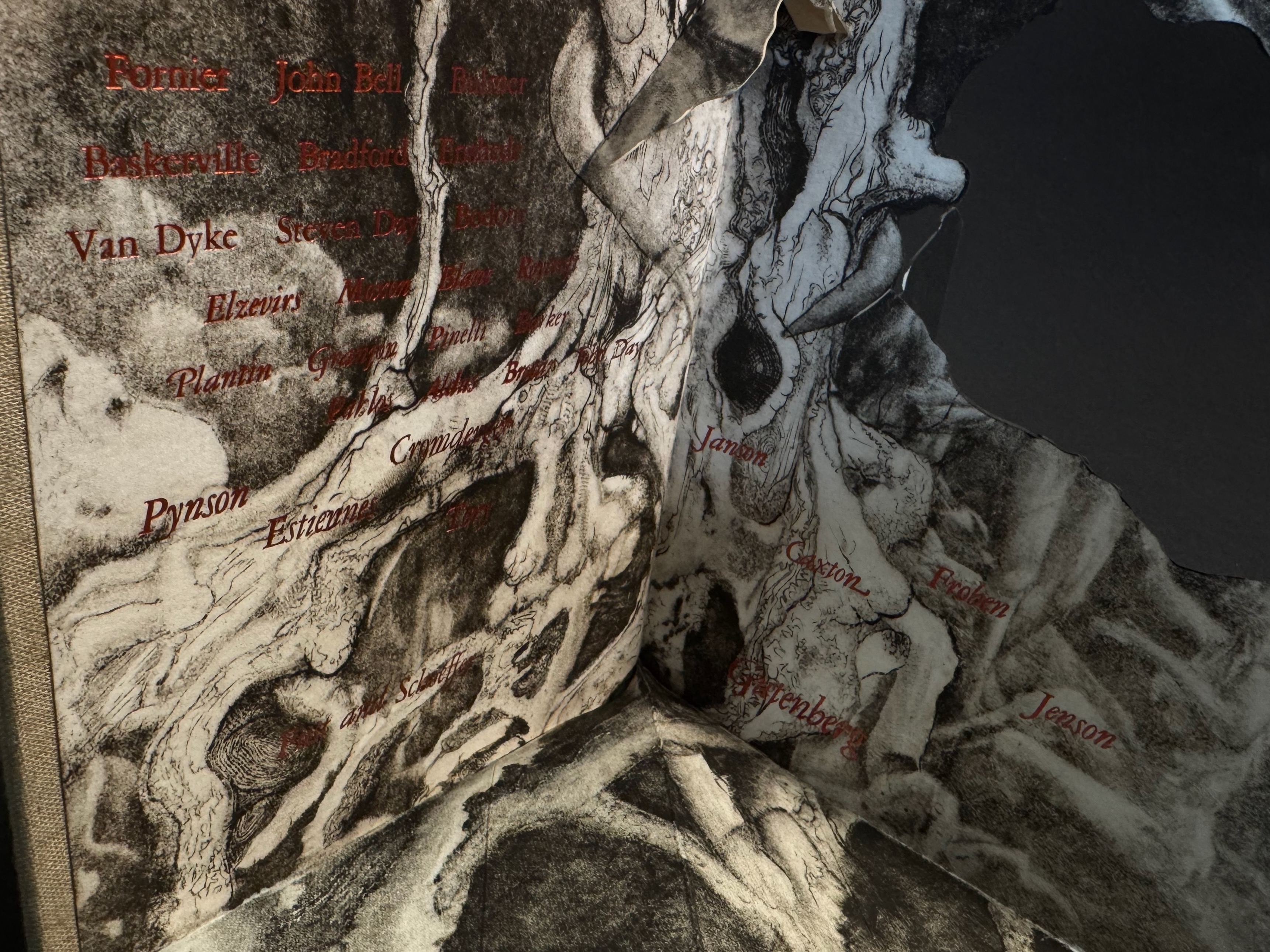 I consider this the final Beta. The next version will have additional intaglio work on the main plate with new plate “wings” extending the width of the book as I prefer the dimensions of my previous prototype. I also have some more names I’d like to add as there are some mid to late 20th century individuals I feel need representation. There will also be structural improvements, I embedded magnets in the cover boards to hold it fully open but not enough of them to be successful!