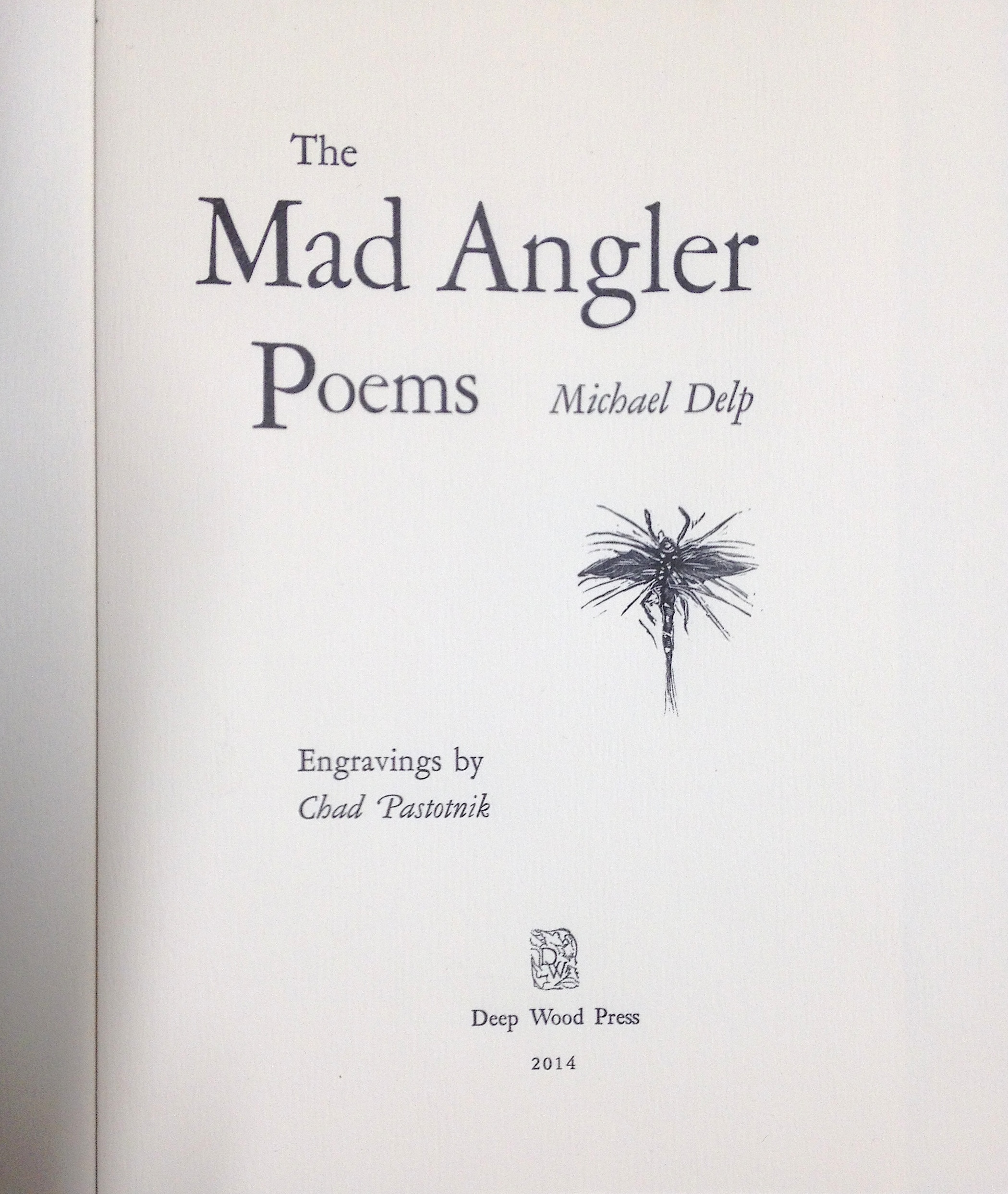 I’m happy to announce the arrival of The Mad Angler Poems, the latest book of verse by Michael Delp produced here at Deep Wood Press. Twenty four poems accompanied by 5 hand colored wood engravings by Chad Pastotnik and an introduction by Jack Driscoll.