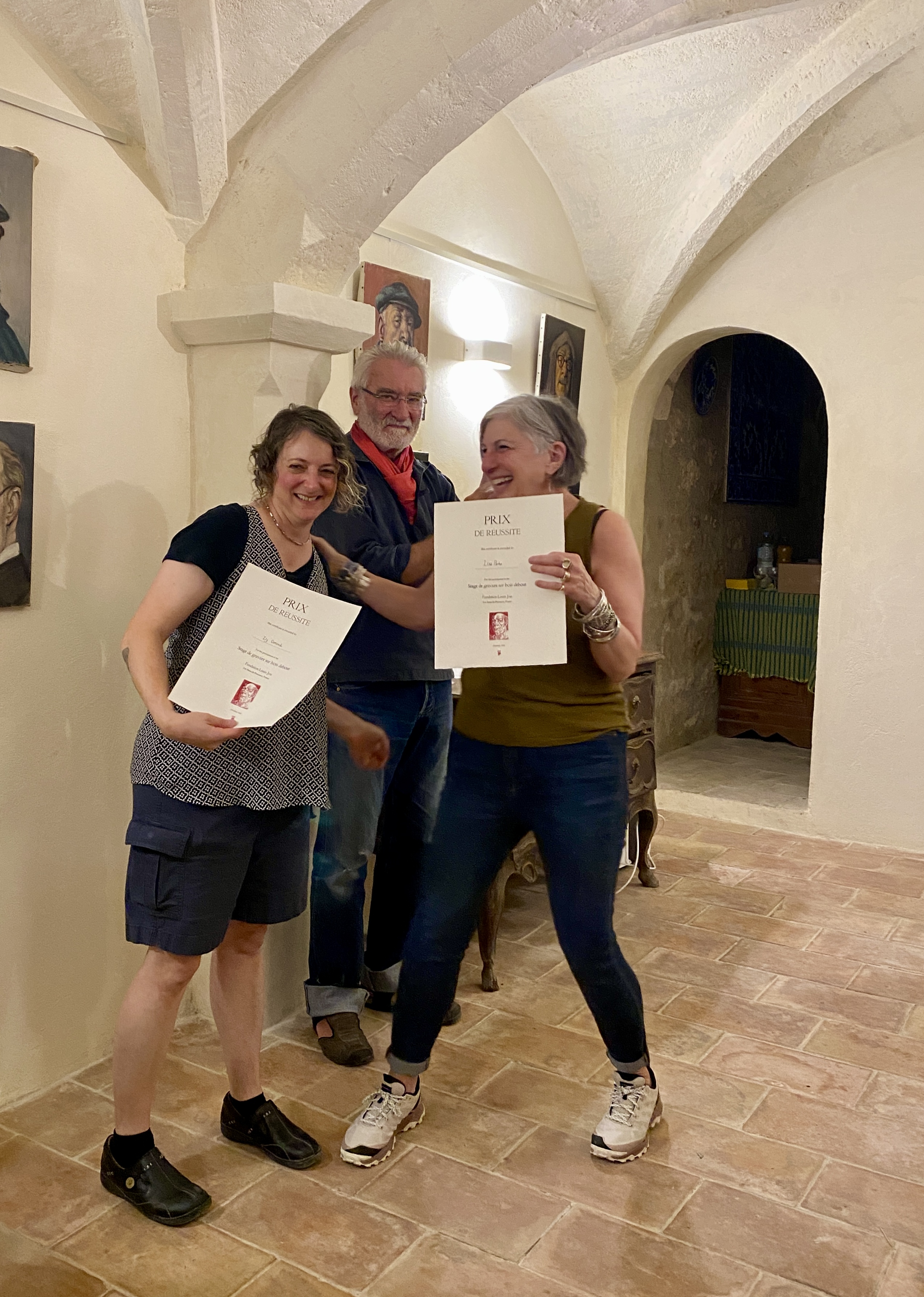 I am pleased to say that the first such workshop has been completed with great success! Joanne Price (Starpointe Studio) is the first instructor I selected to bring to France and she taught a wood engraving class to 9 students traveling from the USA, England, Scotland, Portugal and France for 4 days of intense work in Jou’s beautiful studio in the picturesque old walled village within Château des Baux. Due to the relative isolation of Les Baux we prepared and shared many meals together making the workshop even more intimate for those in attendance encouraging friendships and collaborations that will continue into the future.